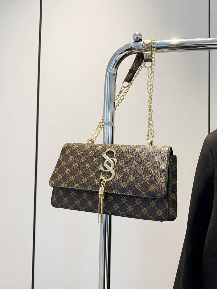 - سلسلة ذهبية فاخرة: تتدلى السلسلة الذهبية بأناقة، لتزيد من فخامة الحقيبة وتجعلها محط الأنظار.