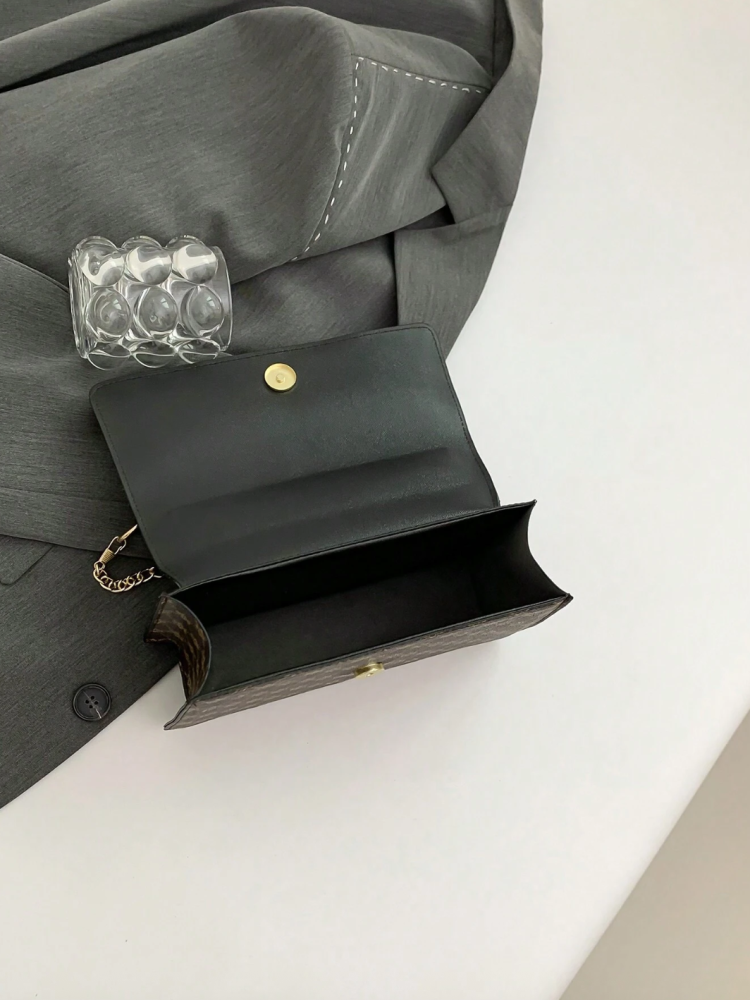 استعدي لتجربة الأناقة العصرية مع حقيبة كروس بودي من الجلد الصناعي بنقشة مع سلسلة ذهبية، الرفيق المثالي الذي يجمع بين العملية والجاذبية الخالدة.