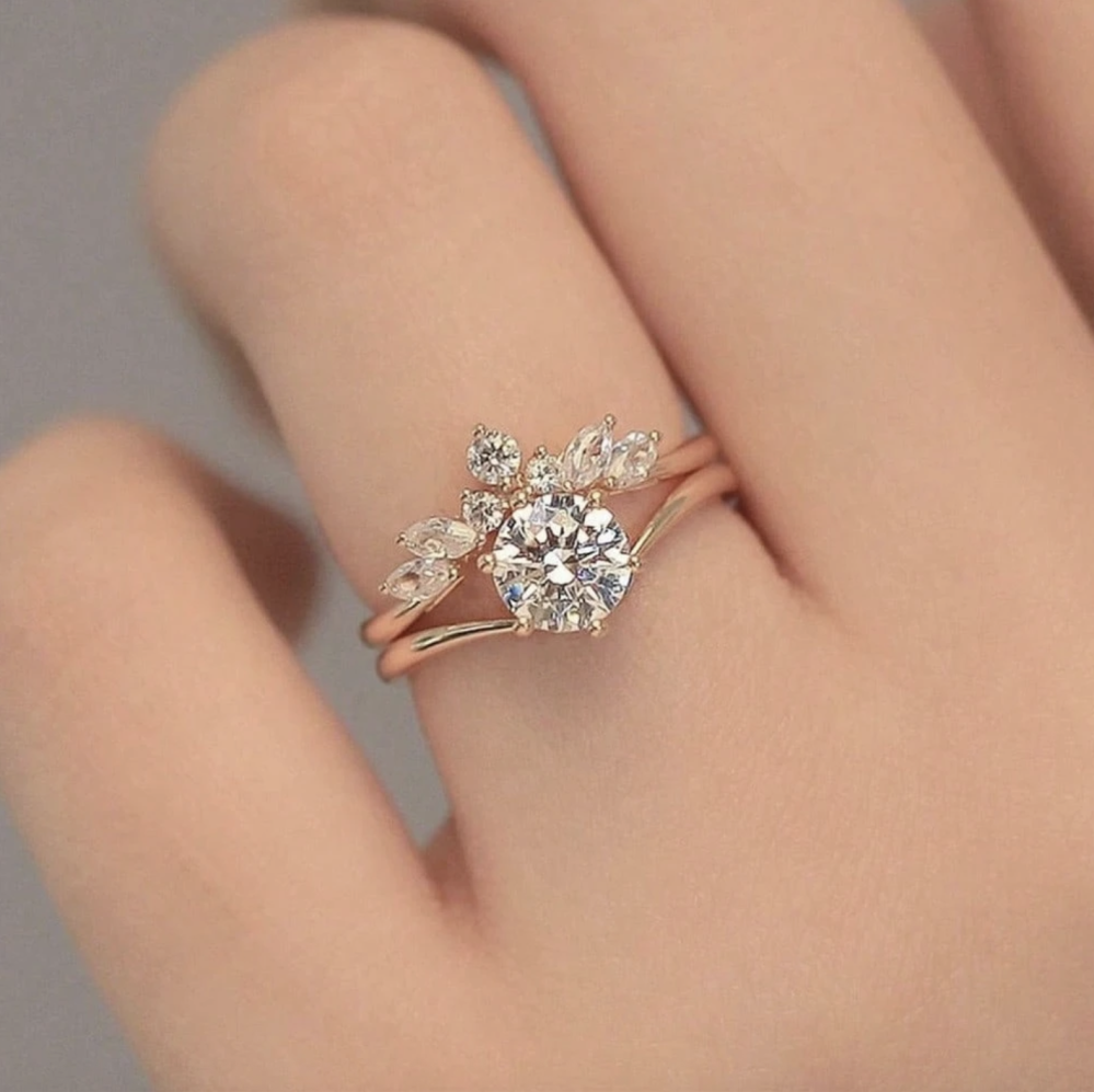 - تفاصيل دقيقة: يحيط بالحجر المركزي مجموعة من أحجار الراين الصغيرة، مرتبة بشكل فني لتزيد من بريق الخاتم وتألقه.