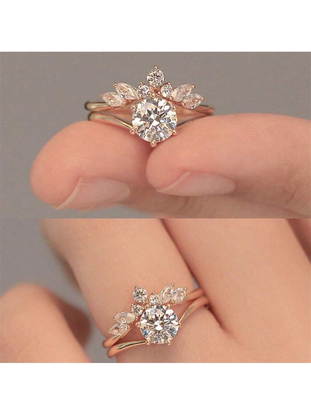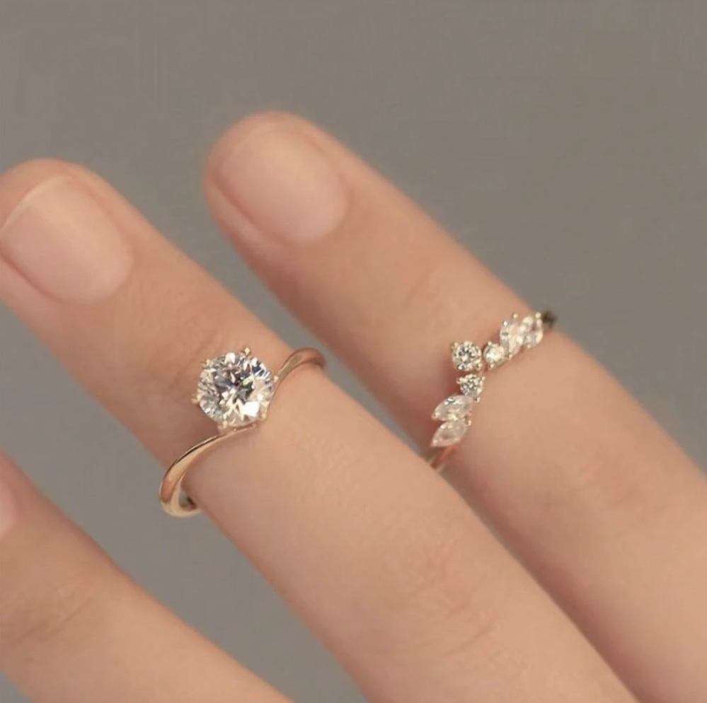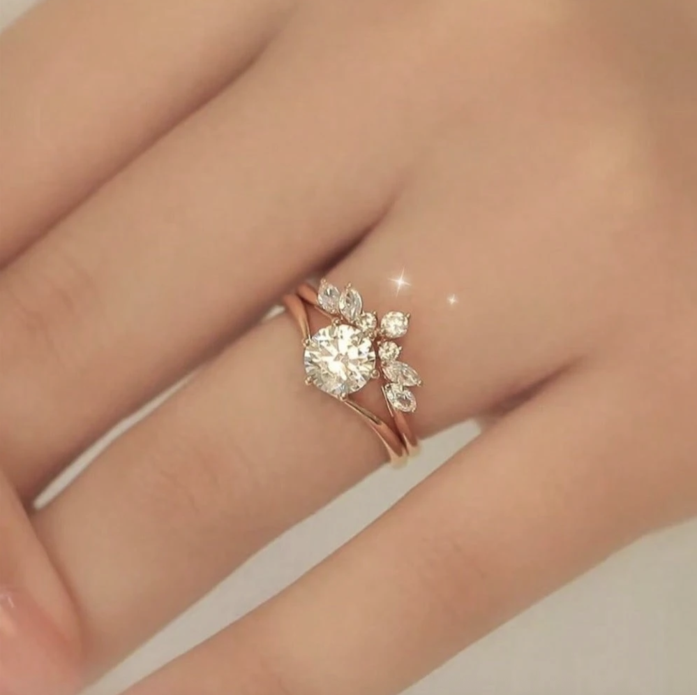 - حجر الراين المتلألئ: يتوسط الخاتم حجر راين كبير، مصقول بدقة ليعكس الضوء بشكل مبهر، مما يضفي عليكِ لمسة من الجاذبية الساحرة.