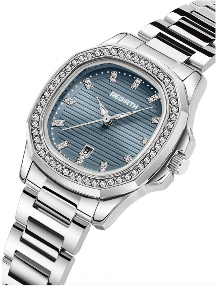 أضيفي لمسة من السحر والتألق إلى إطلالتكِ مع ساعة نسائية كوارتز أنيقة مرصعة بحجر الراين، تحفة فنية تجمع بين الدقة والأناقة في تصميم واحد.