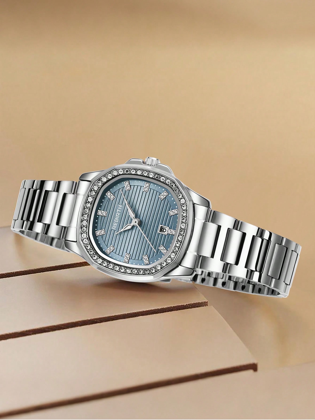 - حزام فضي: مصنوع من الفولاذ المقاوم للصدأ، يضمن متانة ولمعانًا يدومان طويلاً.