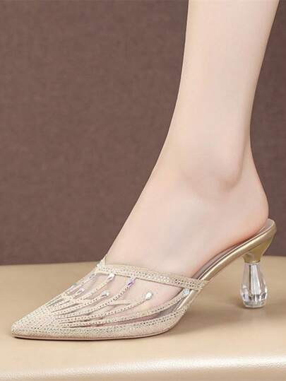 تصميم هذا الحذاء مستوحى من سحر الأمسيات الساحرة، حيث تتلألأ الأحجار الكريستالية لتضفي بريقًا لا مثيل له. يتميز بتصميم مفتوح من الخلف يمنحك حرية الحركة والراحة، بينما يضفي المقدمة المدببة لمسة من الأنوثة والجاذبية على إطلالتك.